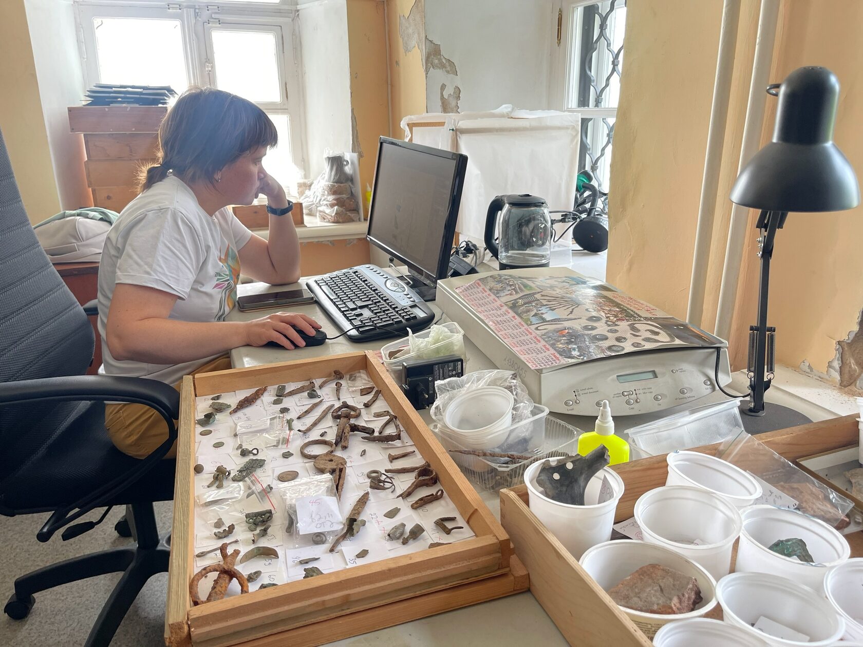 Второй день экспедиции привел нас в славный город на берегу озера Неро - Ростов Великий. Все потому, что ранним утром нас ожидала встреча с местным археологом Алексеем Каретниковым. Наша команда только и успела запомнить, как буквально «нырнула» в удивительную «археологическую кладовку» Алексея. После этого мы потеряли счет времени.